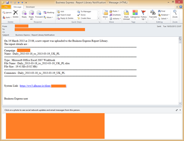 The report library can send an automated email when a report is uploaded to a pre-specified list of recipients. This allows people who are not normally logged into bxp to be notified that a report is now available. This also serves the audit trail process of ensuring that people are notified when reports are available.